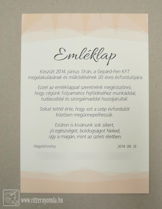 emléklap - céges, jubileum, évforduló, a4