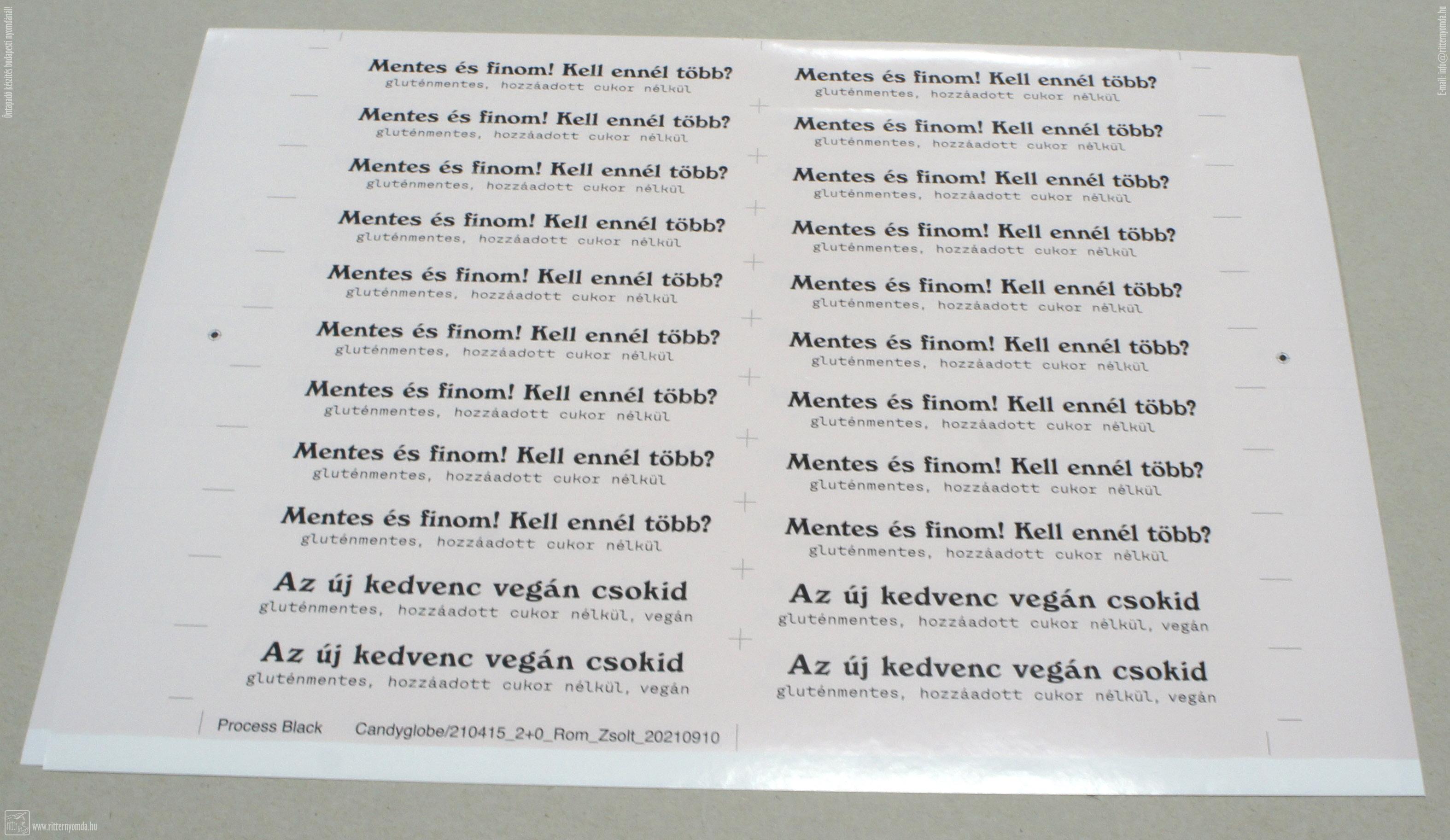 "Öntapadó készítés, Matrica nyomtatás" nyomdai referencia munka.