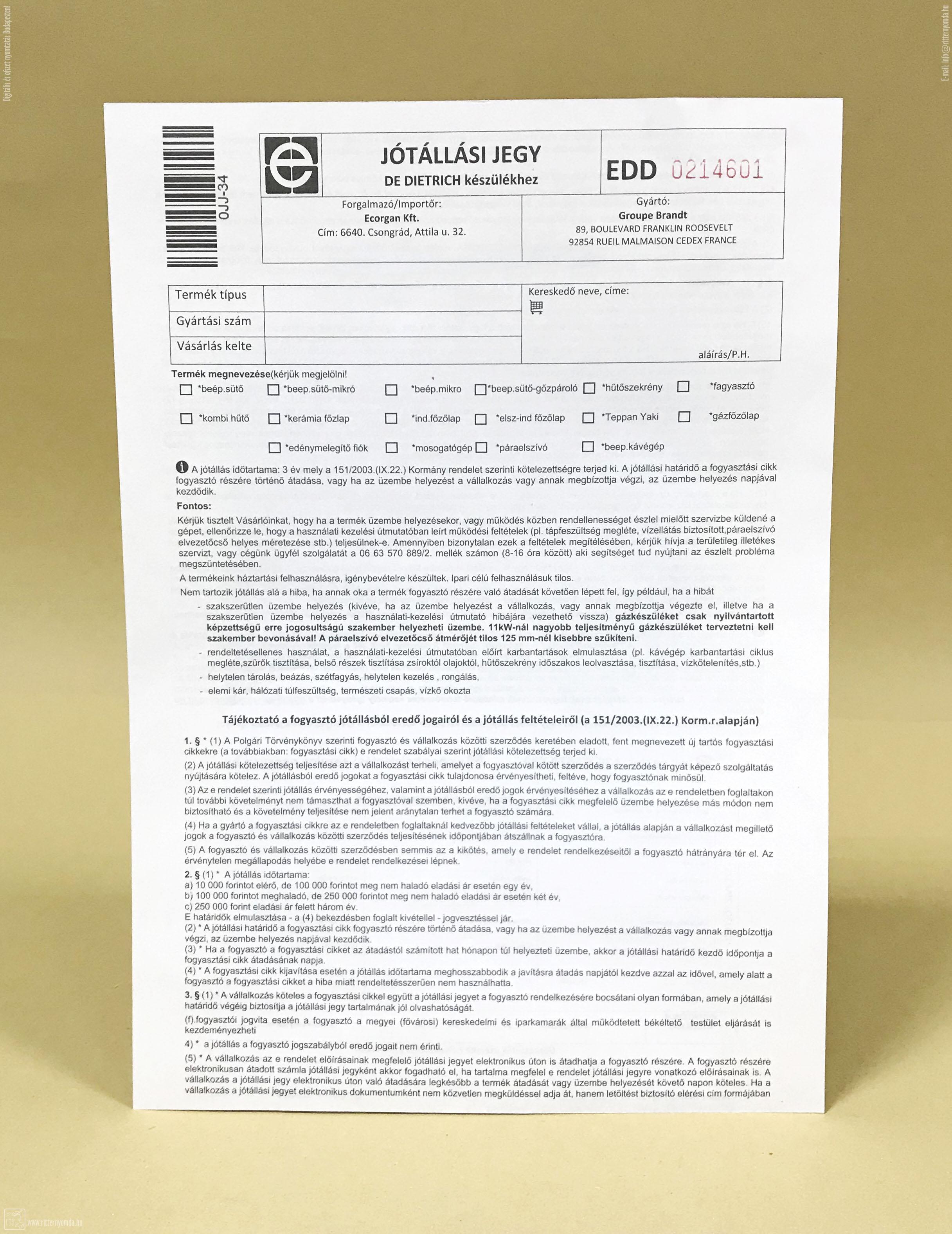 Címkék : jótállási, jegy, sorszámozott