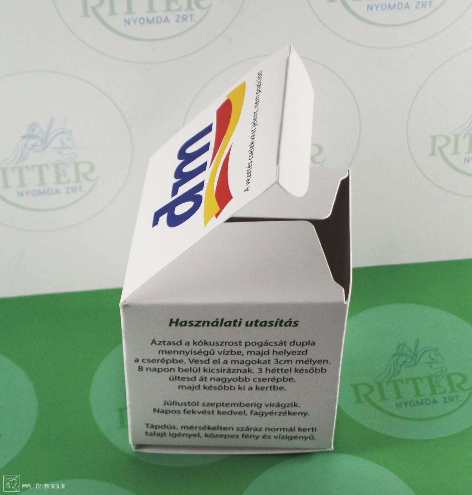 "Doboz készítés, gyártás" nyomdai referencia munka.