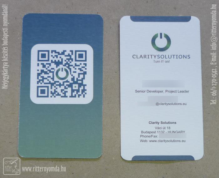 "Névjegykártya készítés digitális, ofszet és szita technológiával" nyomdai referencia munka.