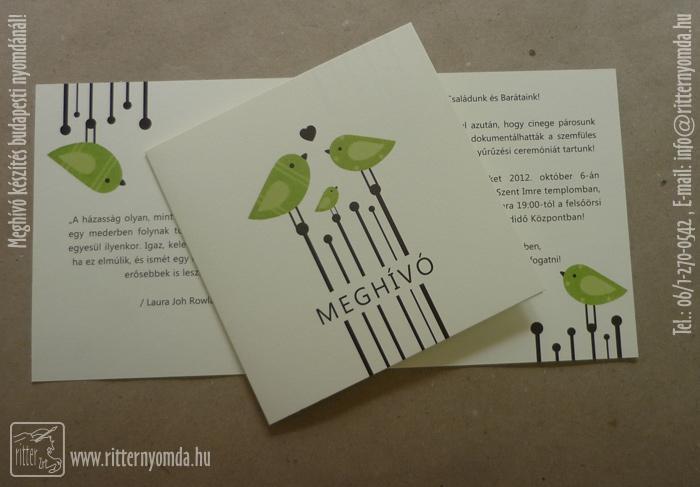 esküvői meghívó - madaras, népies