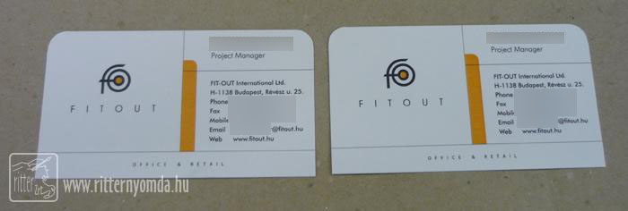 "Névjegykártya készítés digitális, ofszet és szita technológiával" nyomdai referencia munka.
