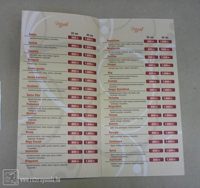 "Étlap, itallap készítés, nyomtatás" nyomdai referencia munka.