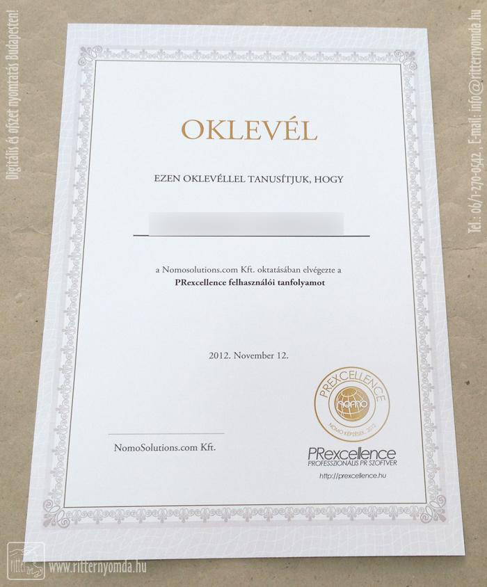 "Oklevél szerkesztés, oklevél nyomtatás" nyomdai referencia munka.