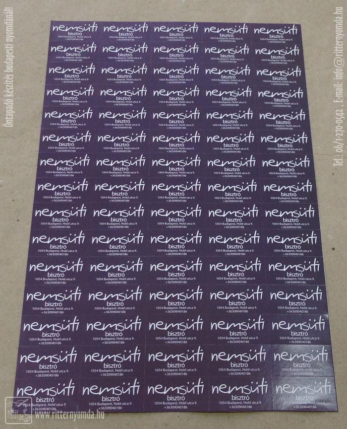 "Öntapadó készítés, Matrica nyomtatás" nyomdai referencia munka.