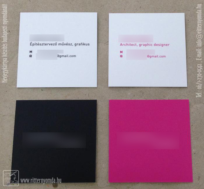"Névjegykártya készítés digitális, ofszet és szita technológiával" nyomdai referencia munka.