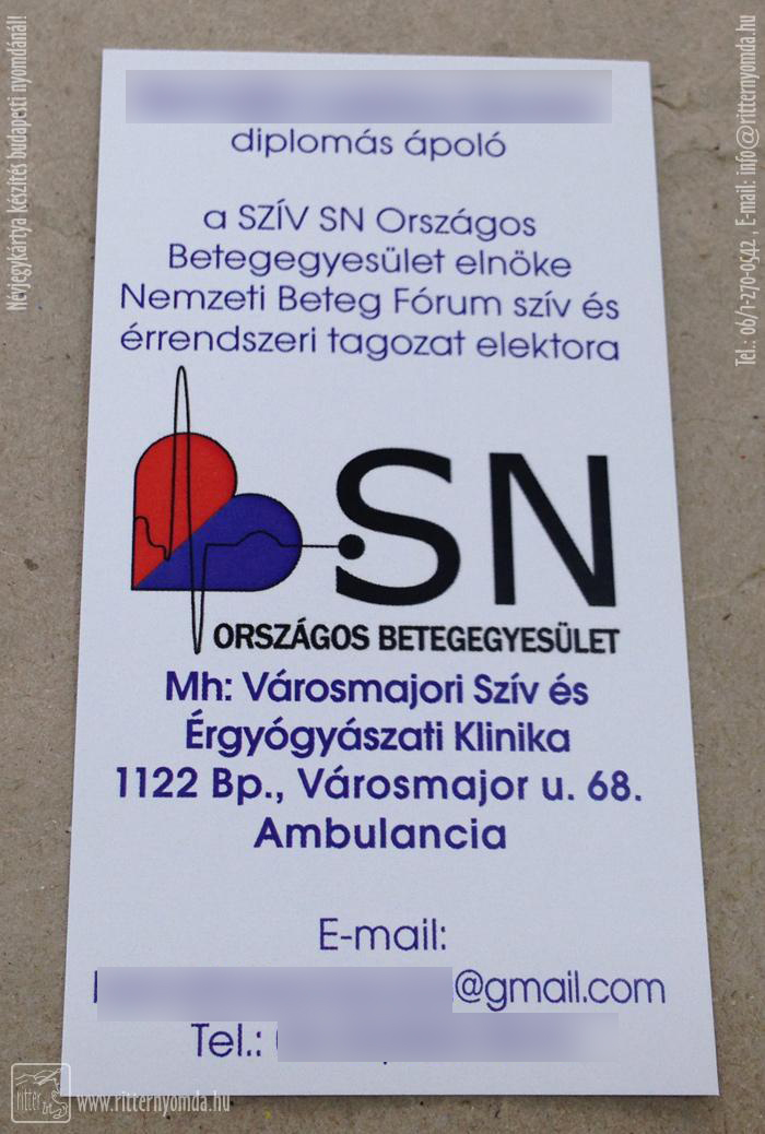 névjegykártya - beteg, egyesület, diplomás, ápoló