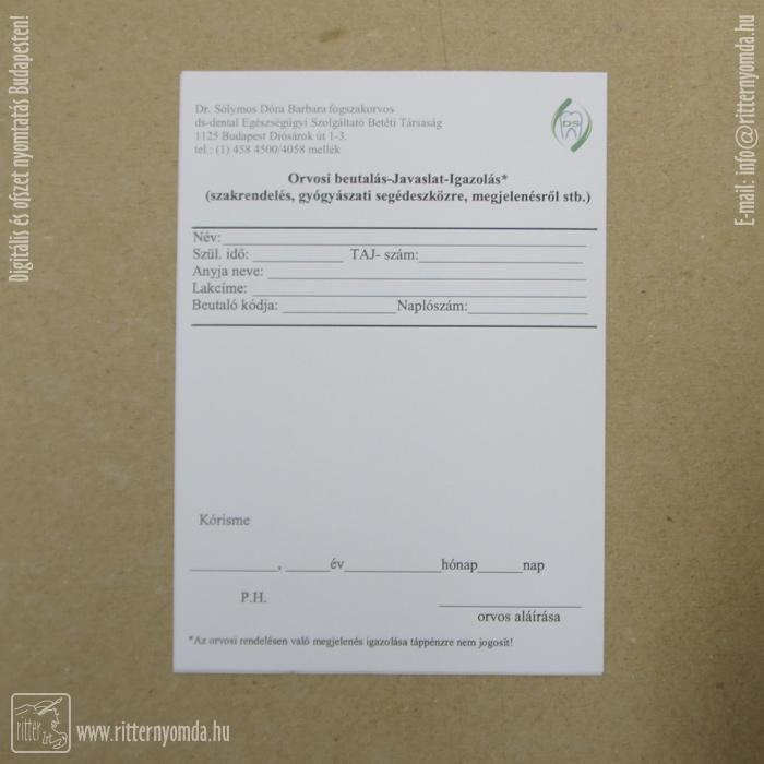 beutaló - fogorvos, orvos, igazolás, a4
