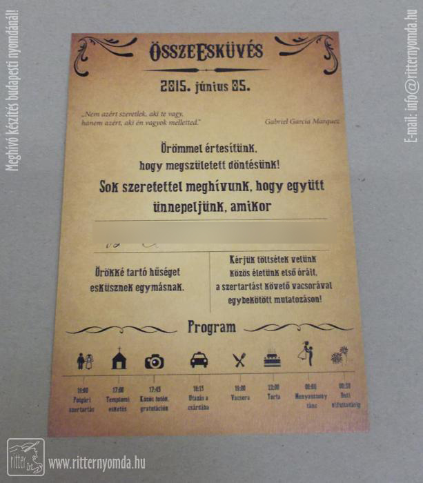 "Meghívó készítés, meghívó nyomtatás" nyomdai referencia munka.