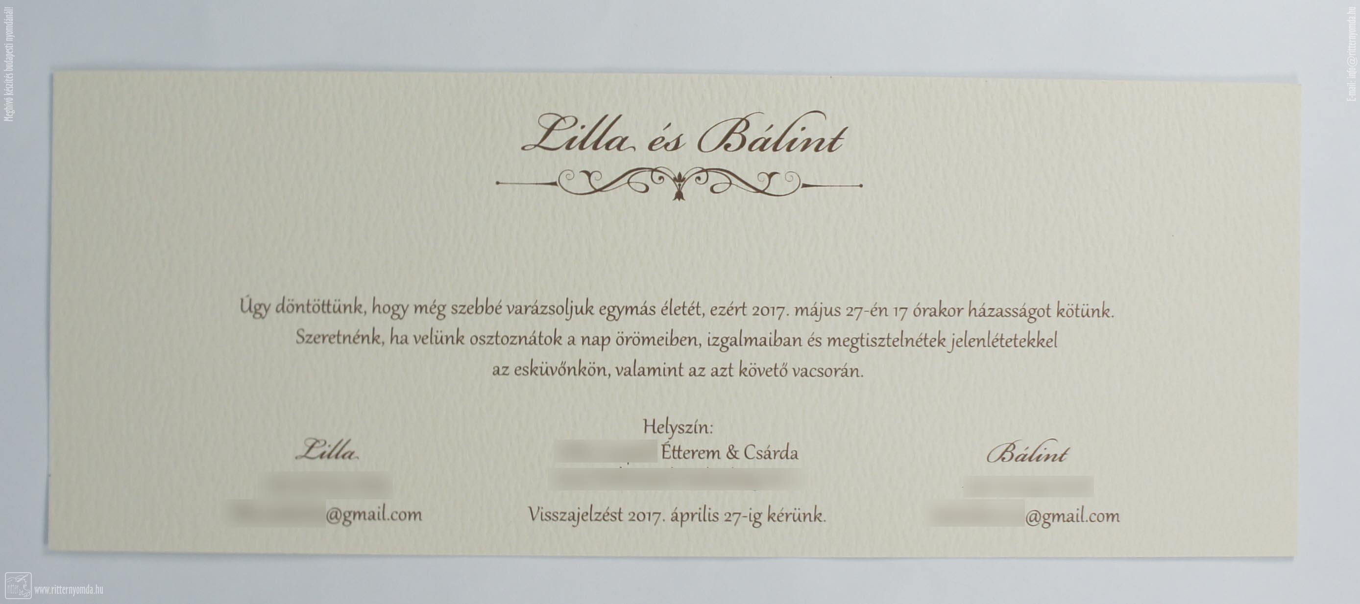 Szitanyomás Esküvői meghívó felülnyomás - esemény, lakodalmi, esküvő