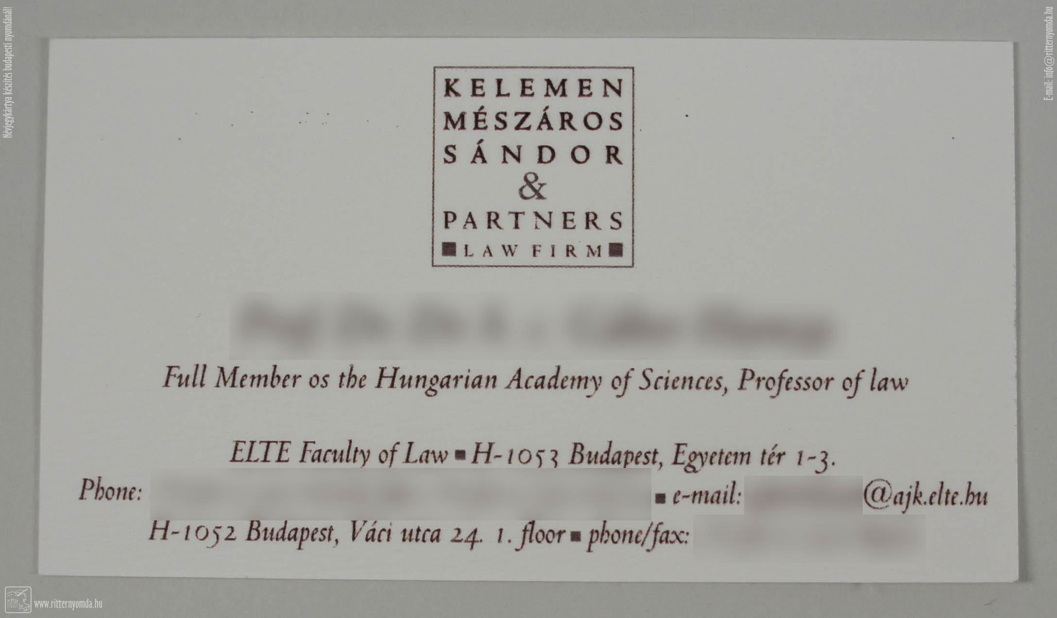 Névjegykártya - ügyvéd, angol, logózott