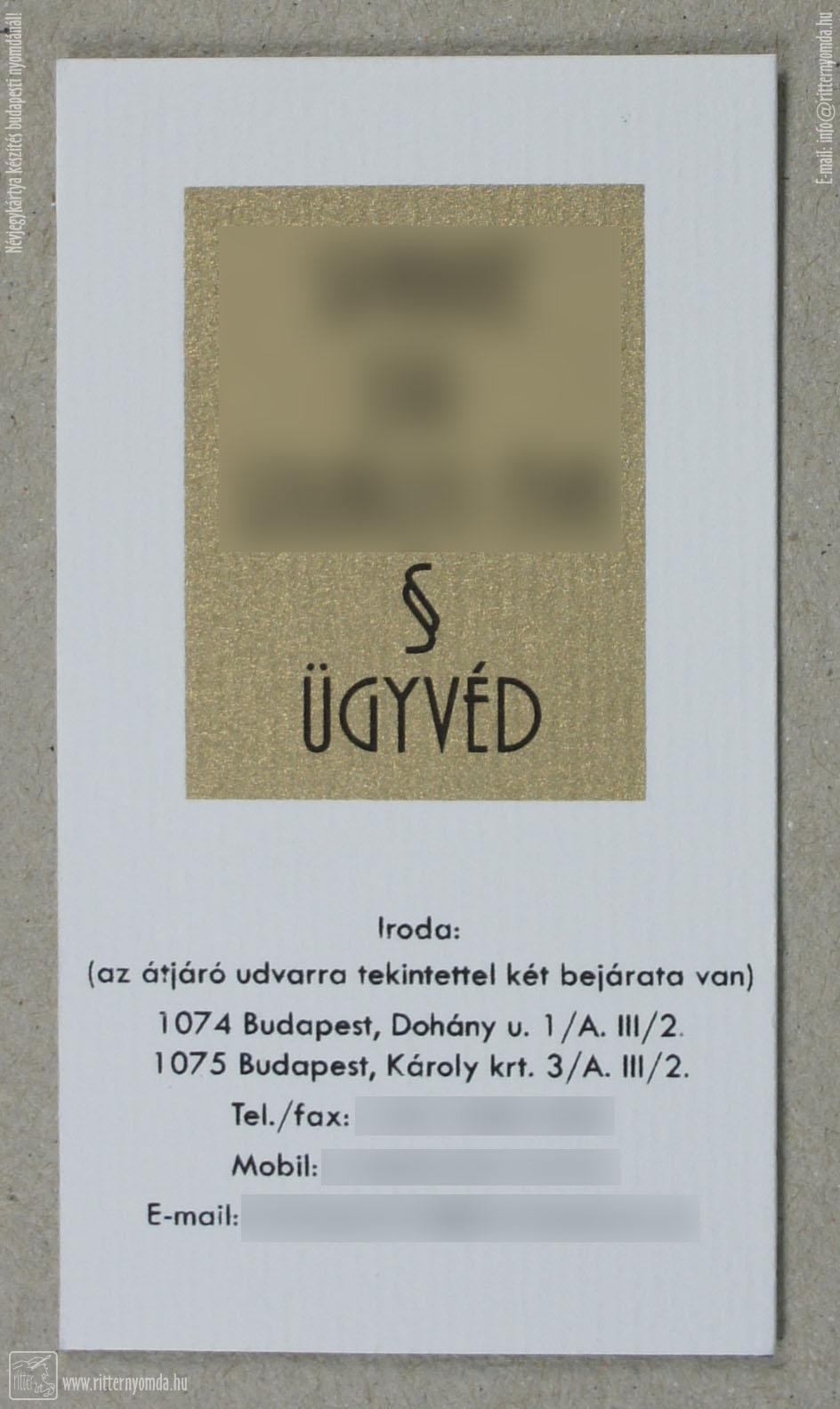 Szitanyomás Névjegykártya - ügyvéd, logózott, arany