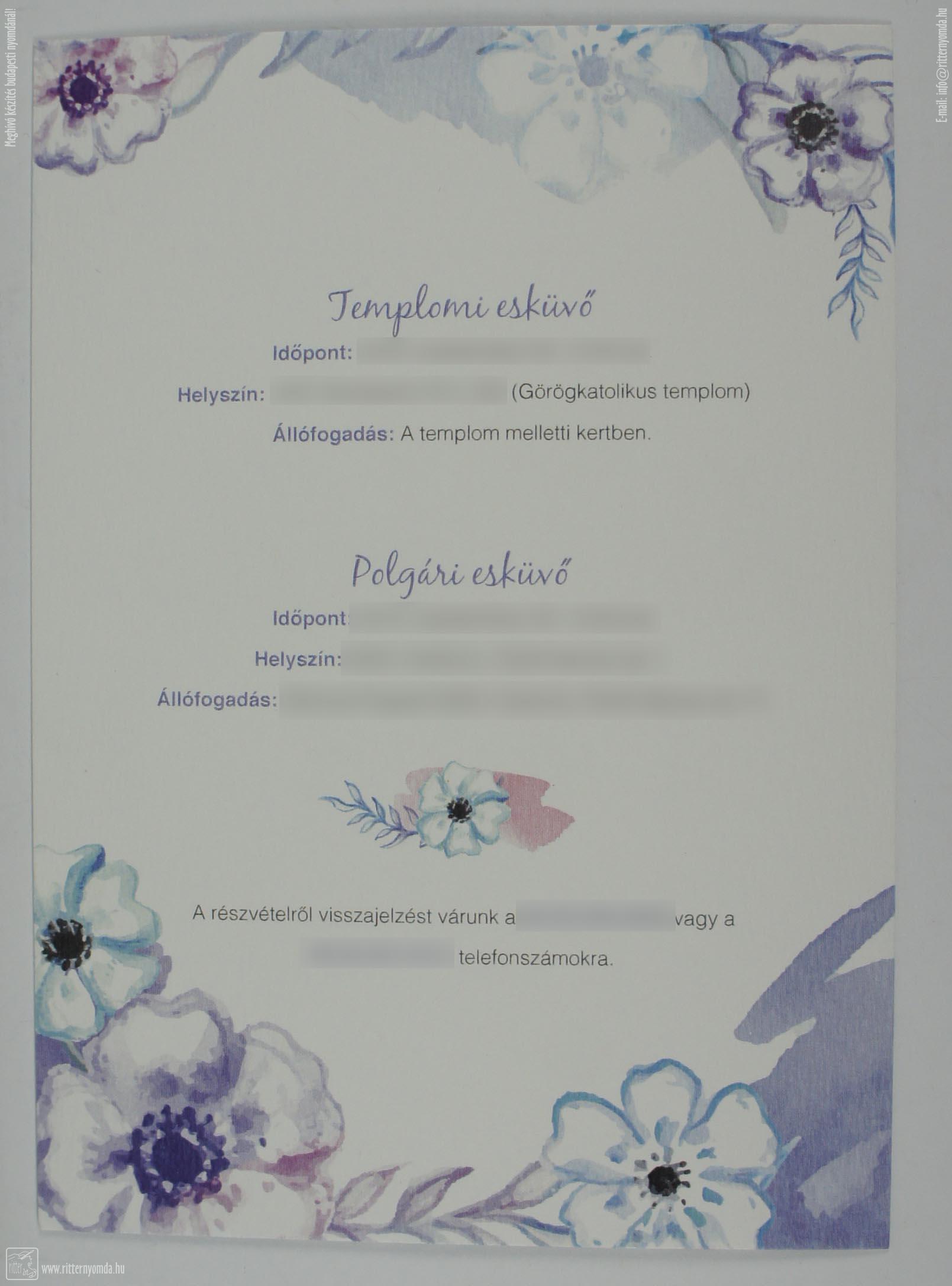 Meghívó - esküvői, lakodalom, virágos