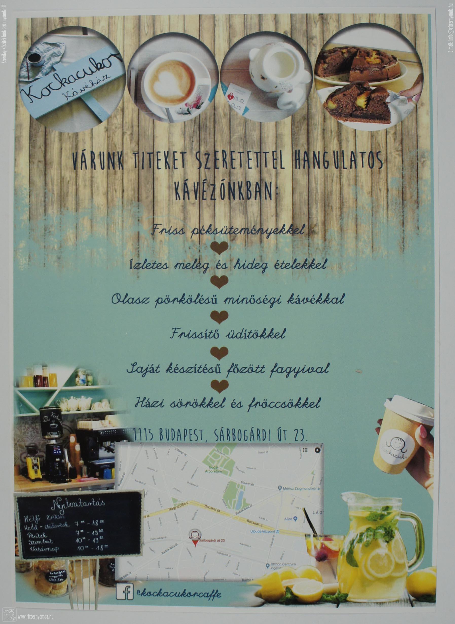 Szórólap - kávézó, térképes, nyitva, tartás, a5