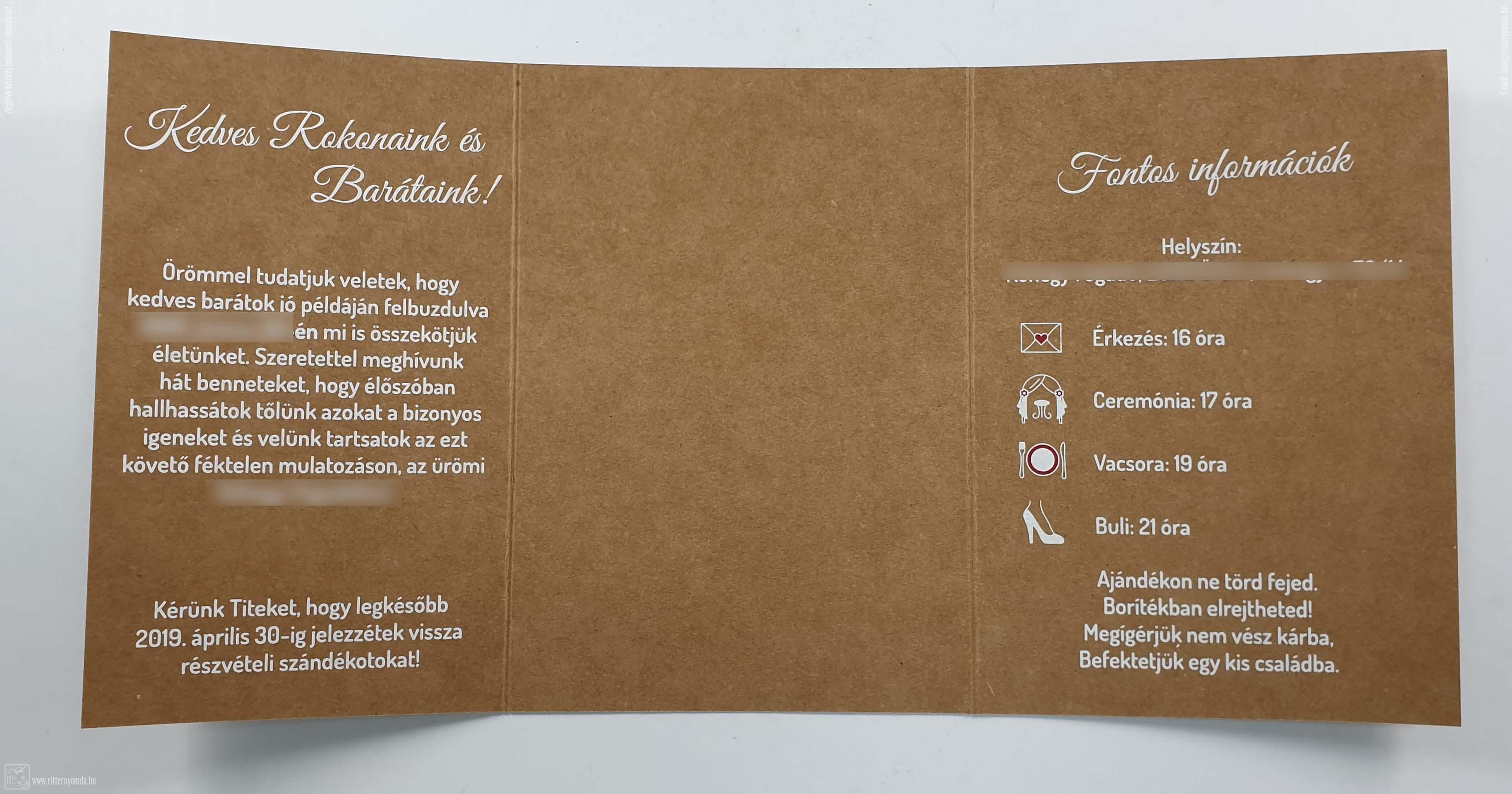 "Meghívó készítés, meghívó nyomtatás" nyomdai referencia munka.