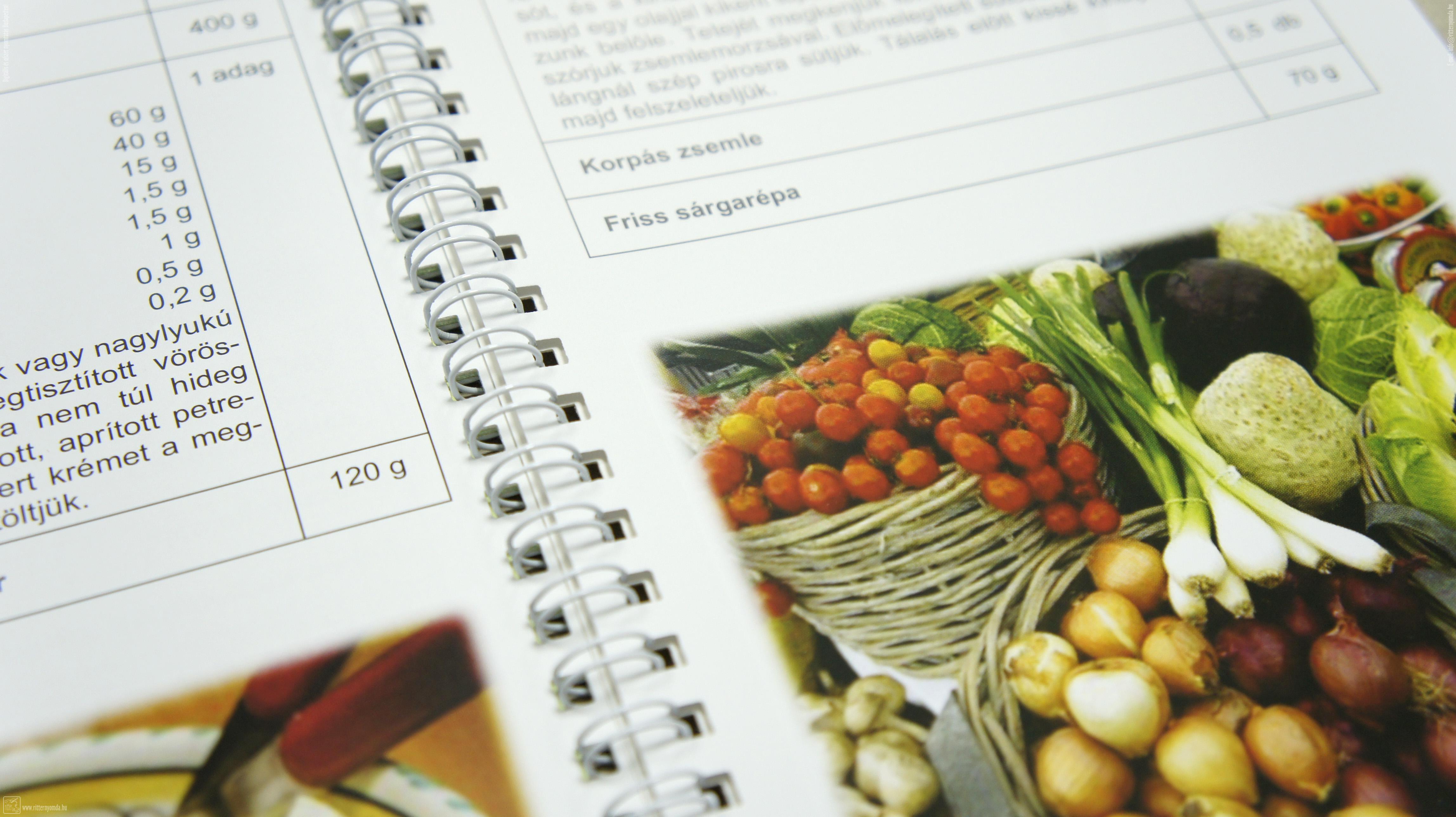 Címkék : receptek, alapanyagok, spirálos, dietetika, egészséges, életmód, védőborítóval, álló, formátum, ofszet, nyomtatás, méretre, vágva