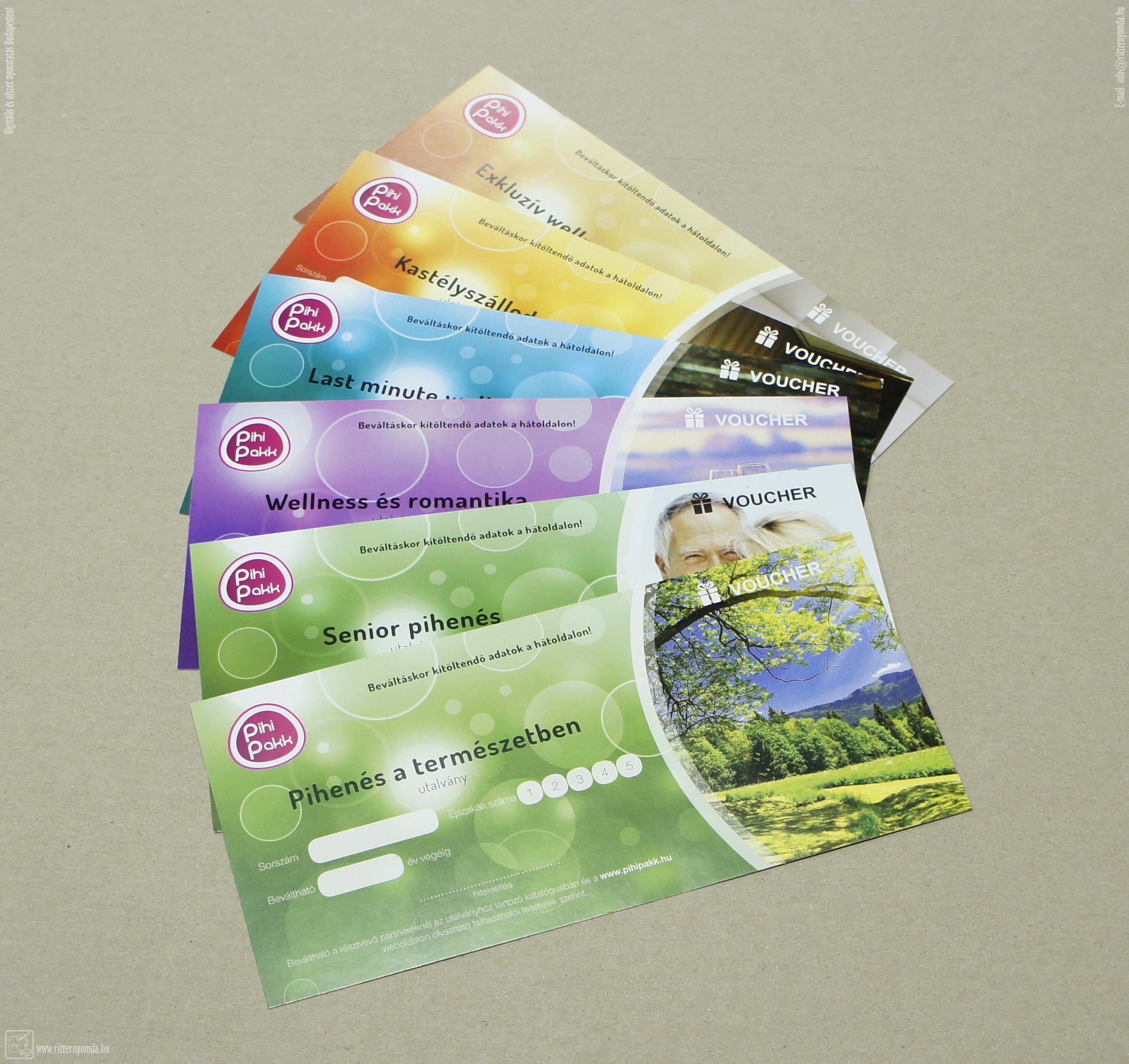 Ofszet nyomás, Voucher O - wellness, romantikus, üdülés, pihenés, méretre, vágva, utalvány