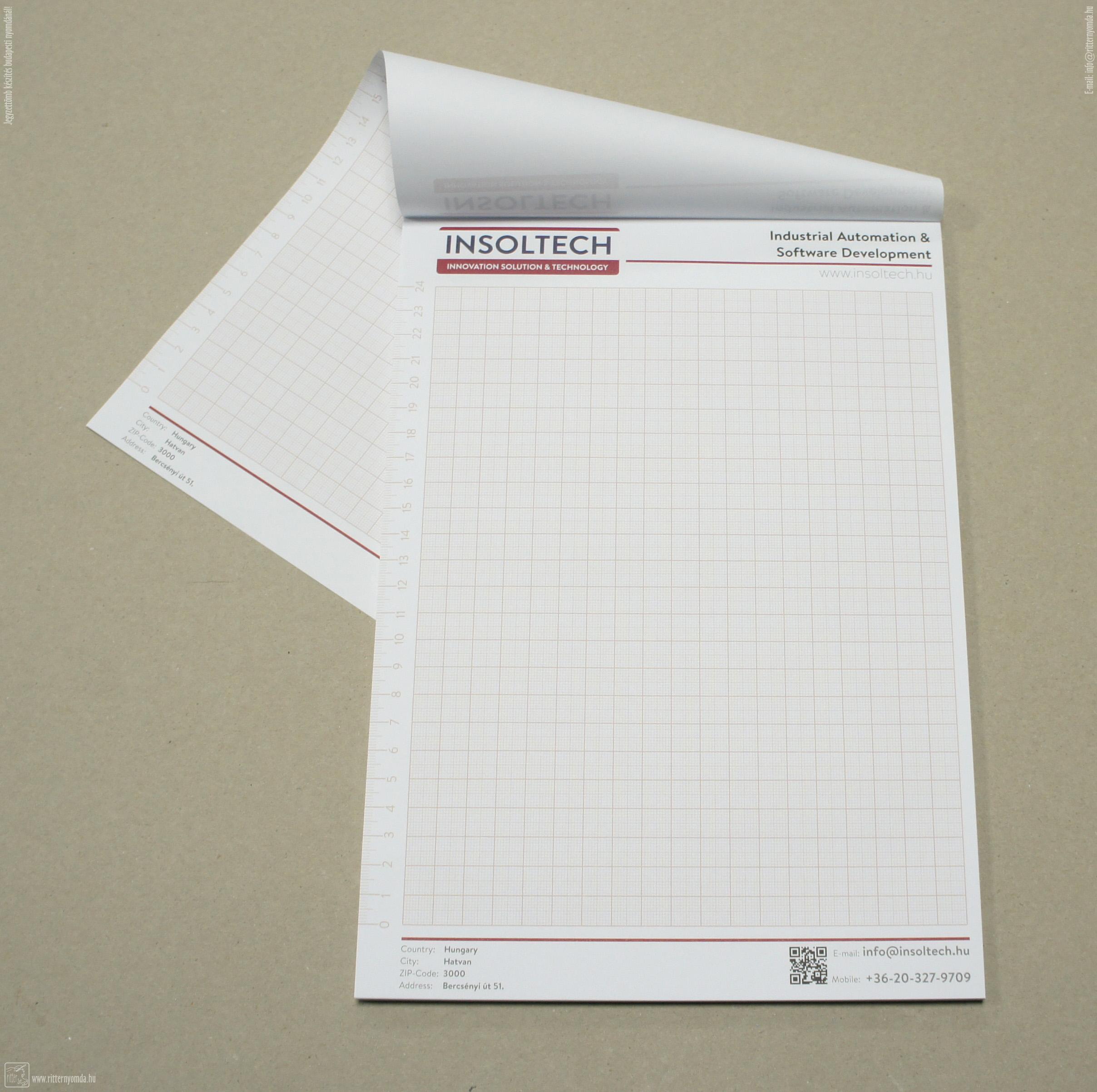 Ofszet nyomás, Jegyzettömb A/4 - cég, logó, vonalzó, fejben, ragasztva, nyomatlan, hátlapkartonnal