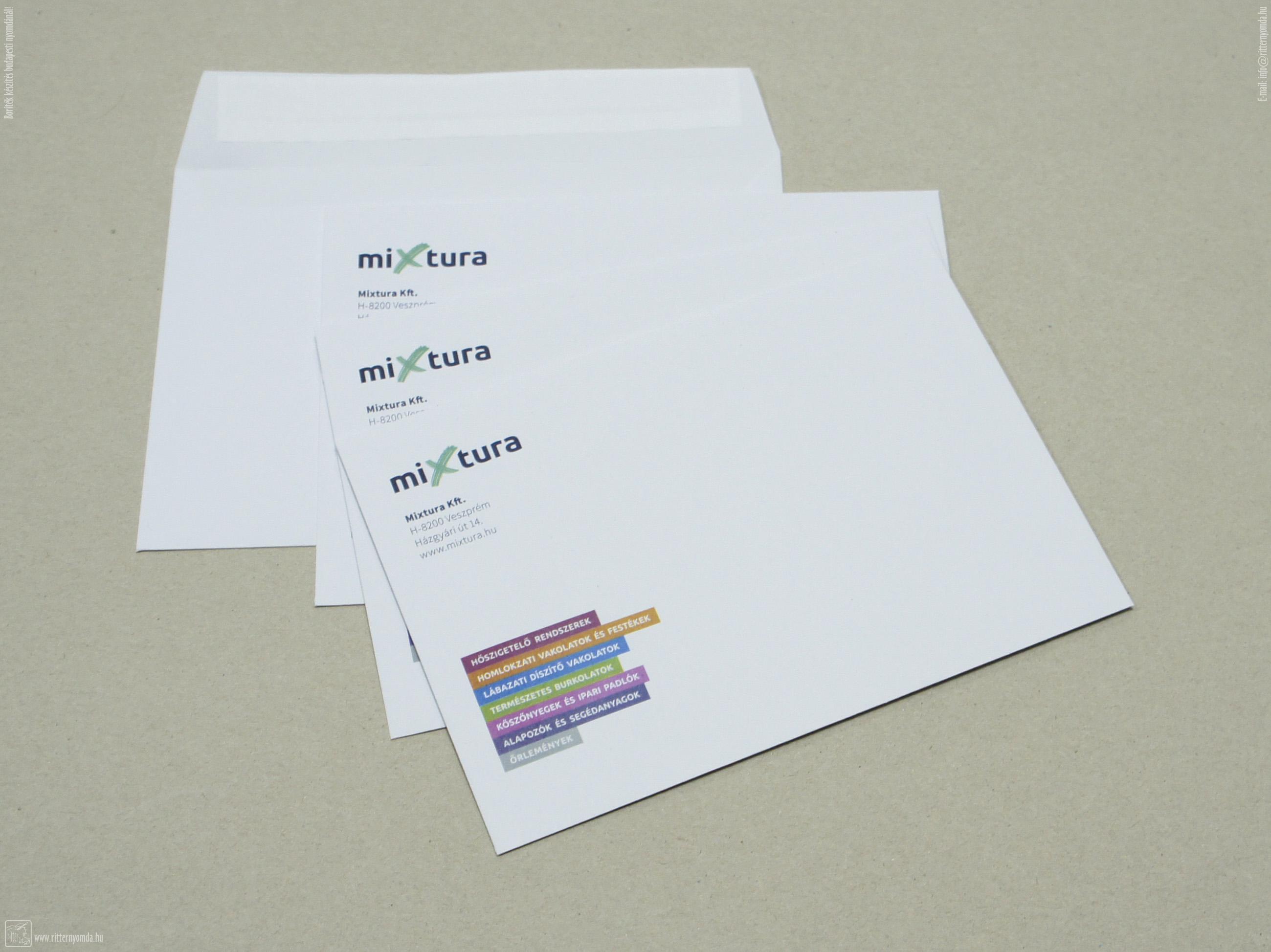 "Boríték készítés, boríték felülnyomás" nyomdai referencia munka.