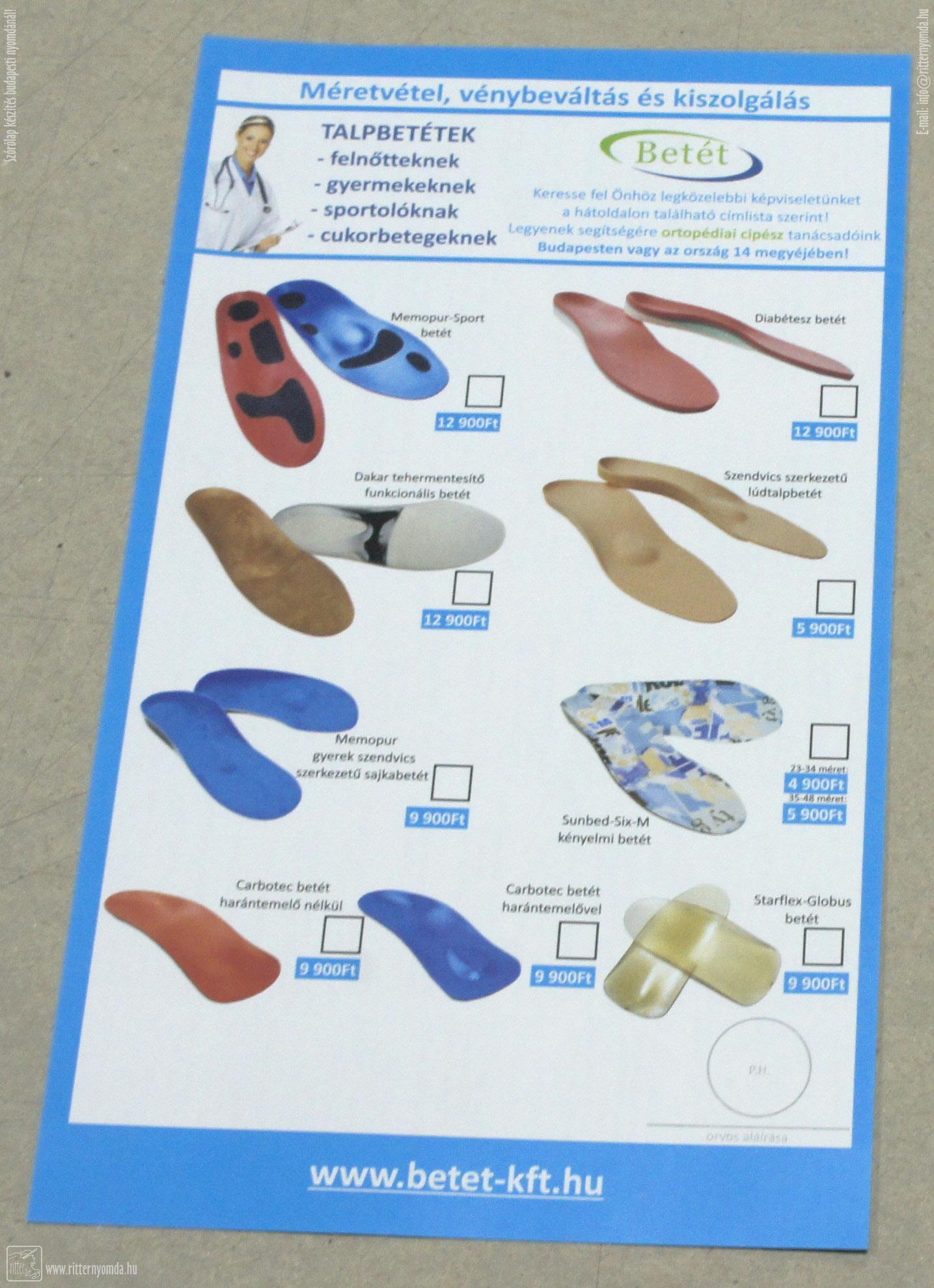 Ofszetnyomás Szórólap - talpbetét, cipő, viselet