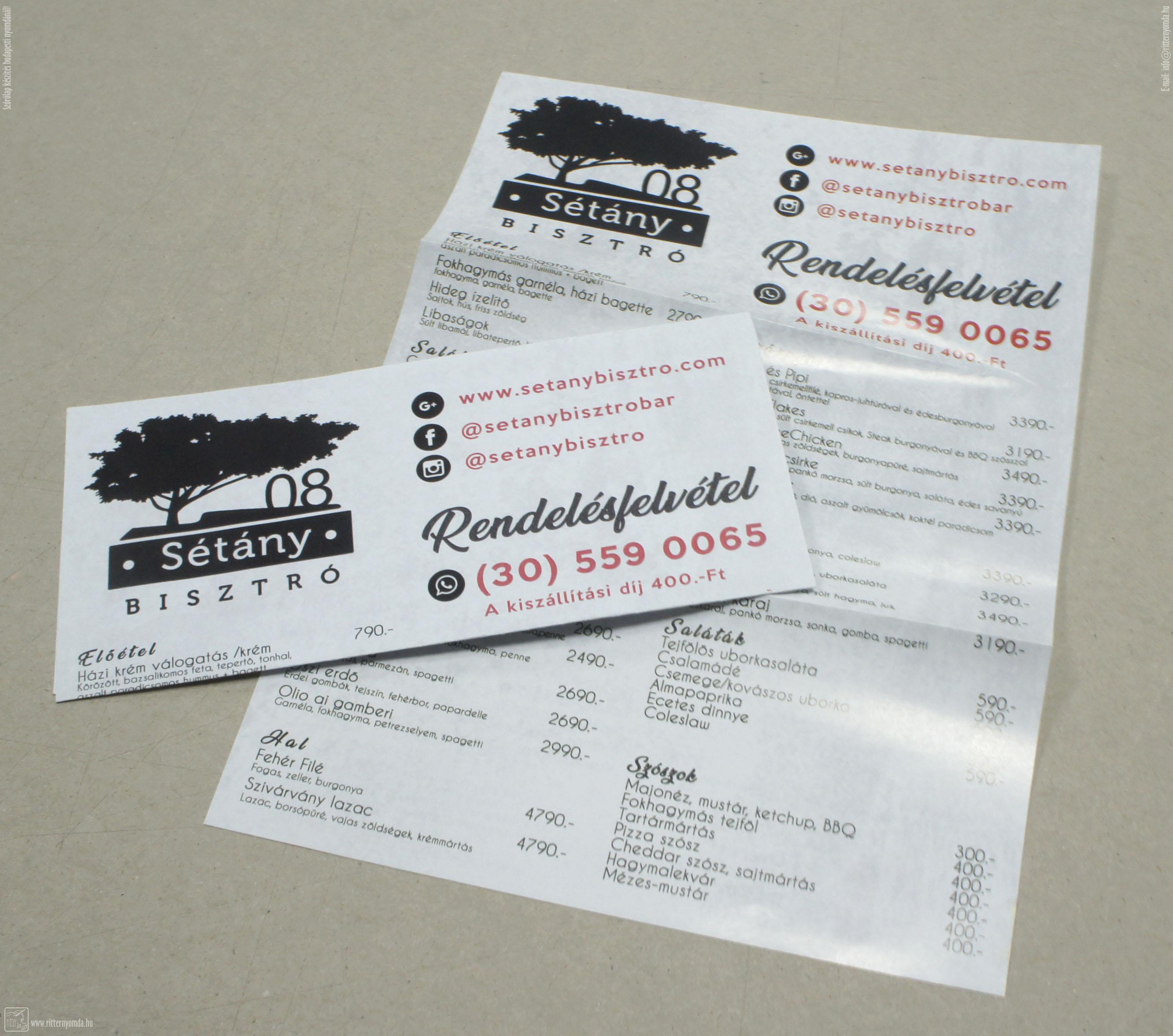 Ofszetnyomás Szórólap - étlap, étterem, menü