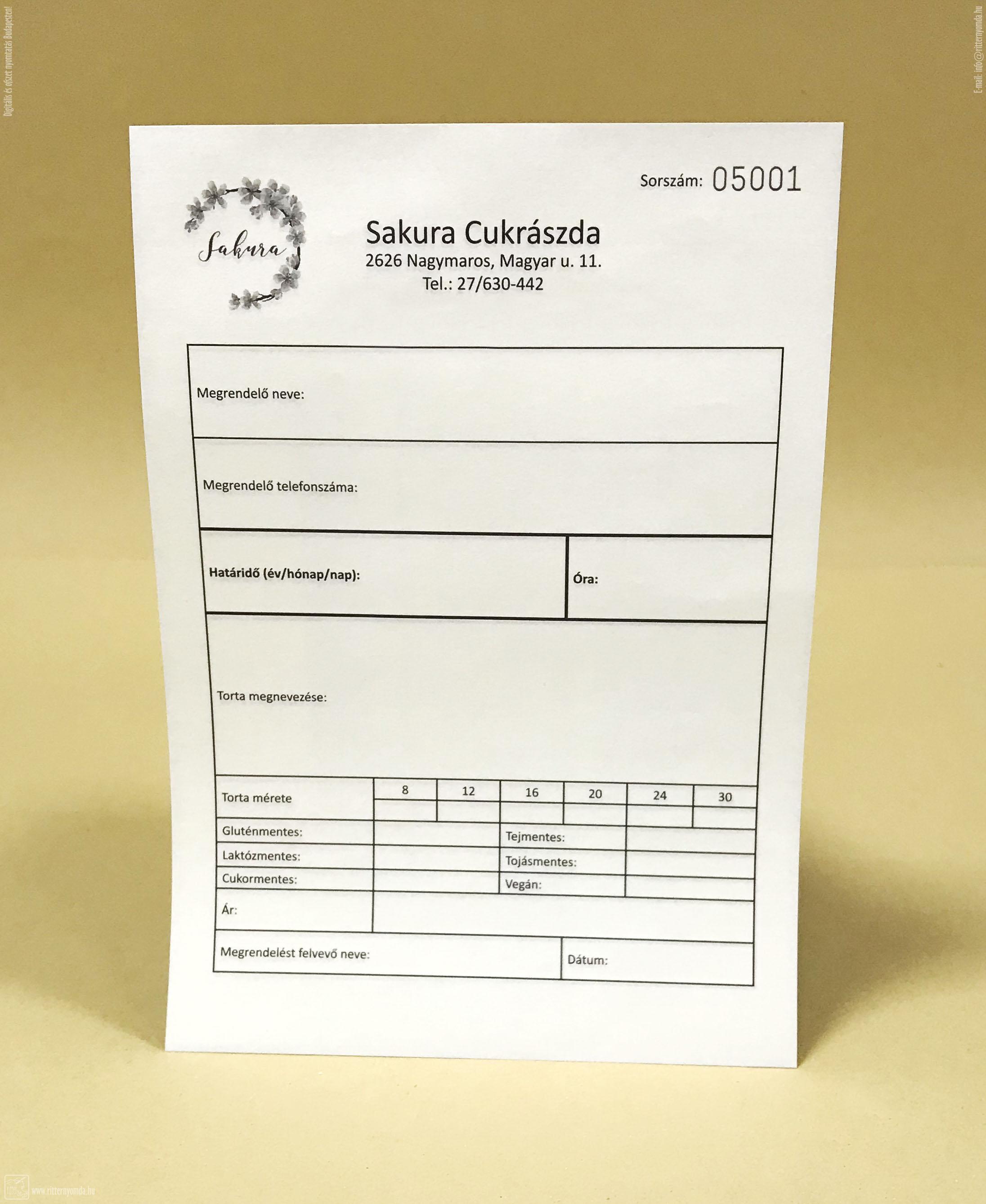 garnitúránként FEJBEN ragasztott, 3 lap/garn., sorszámozva