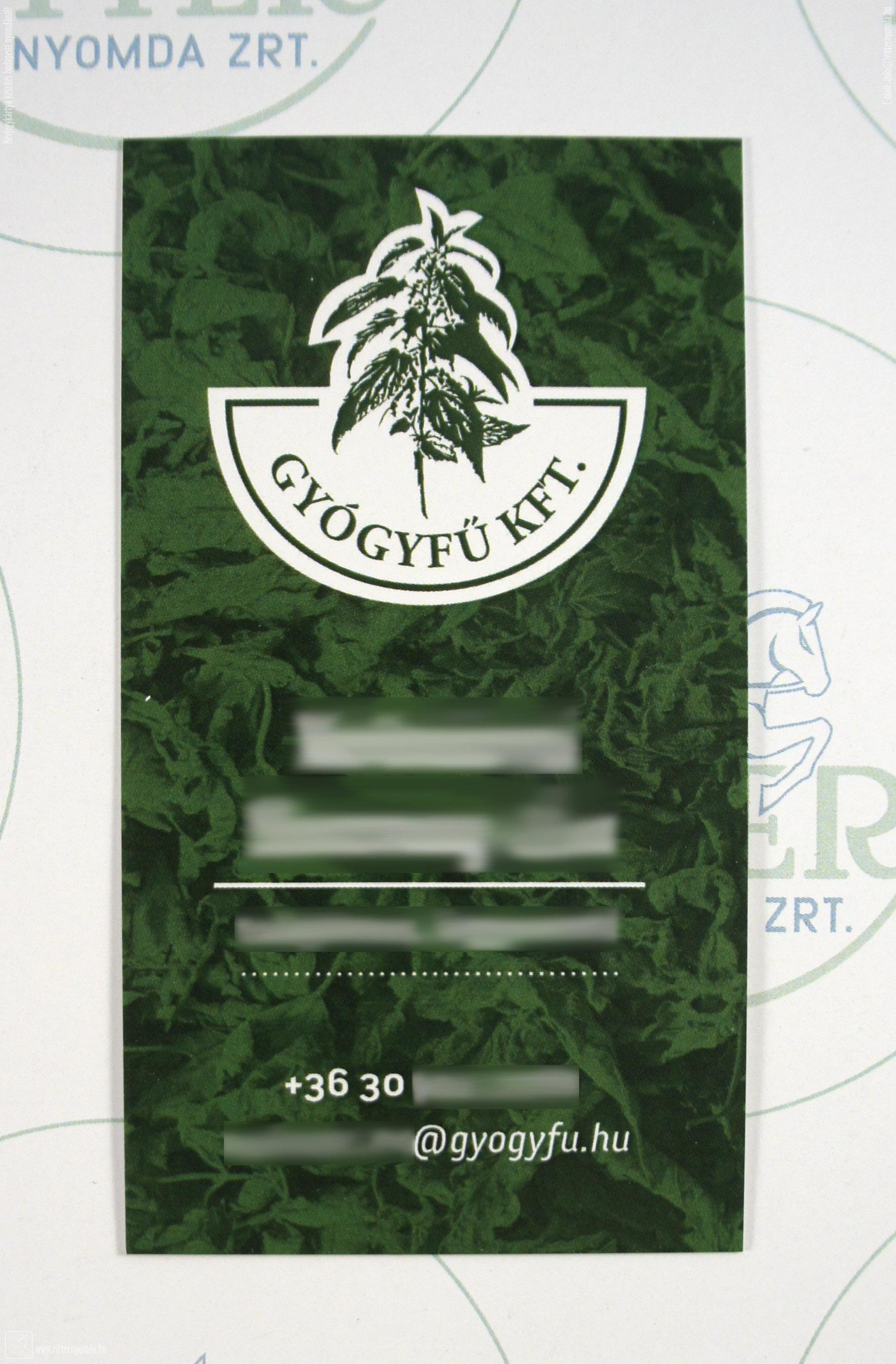 Névjegykártya - névjegy, digitális, nyomás, színes, kétoldalas, gyógyfű, 50x90, mm