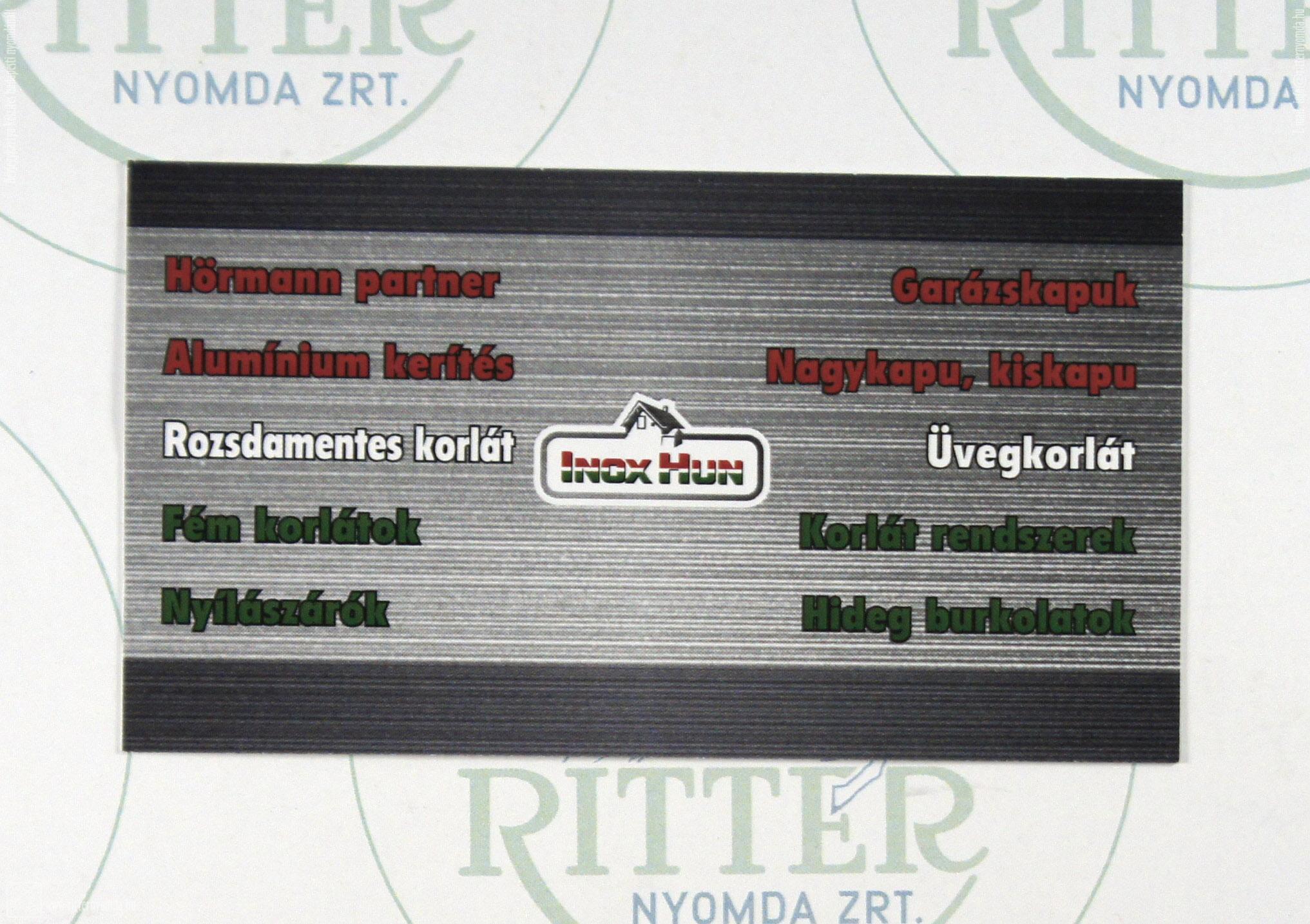 (Címkék: névjegy, digitális, nyomás, kétoldalas, színes, 90x50mm, inox, hun, korlát, kapu)